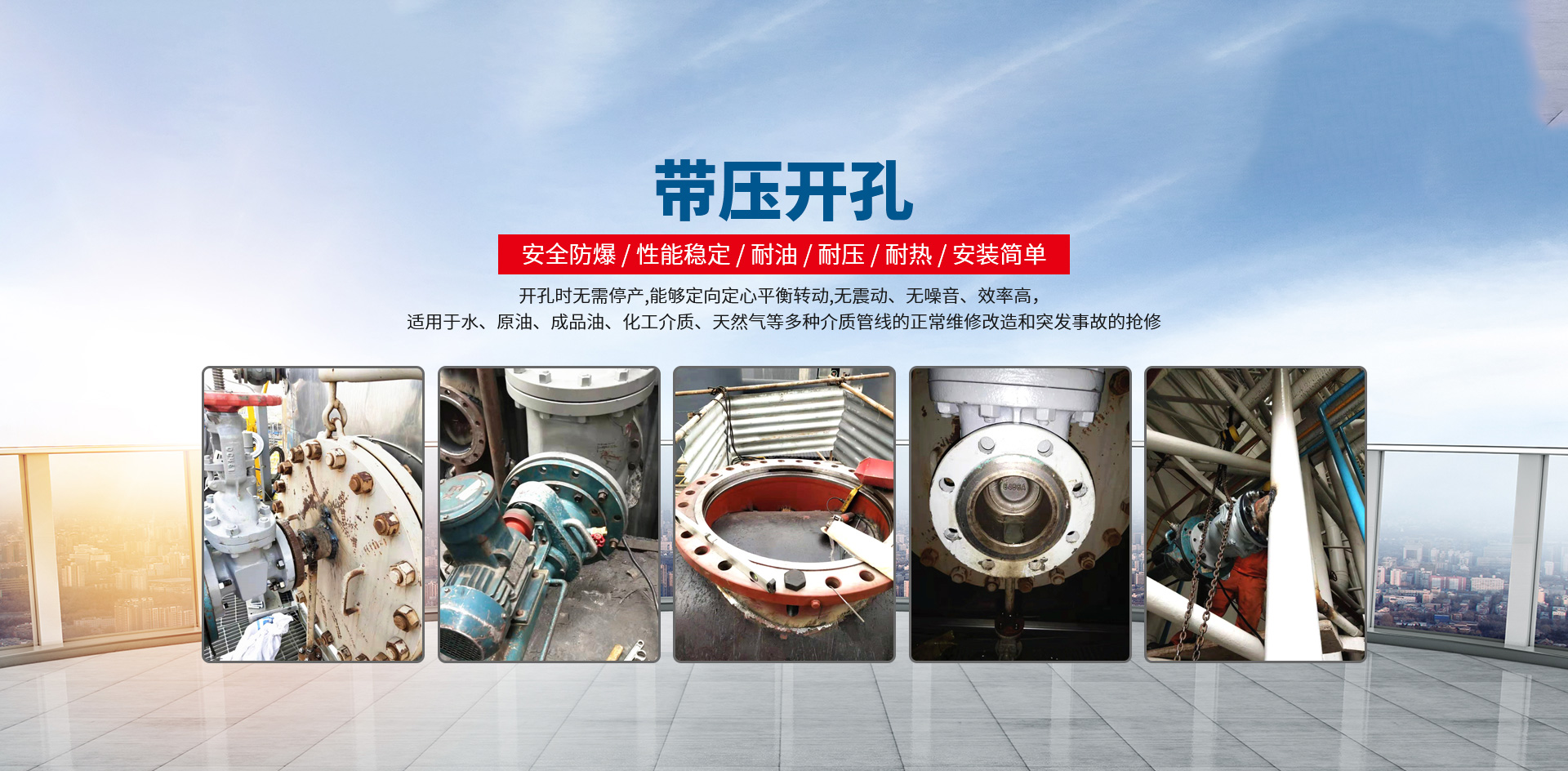 專業(yè)從事堵漏工程,管道設(shè)備維修,管道帶壓開孔,管道帶壓封堵,管道帶壓堵漏,管道設(shè)備清洗等業(yè)務(wù)。